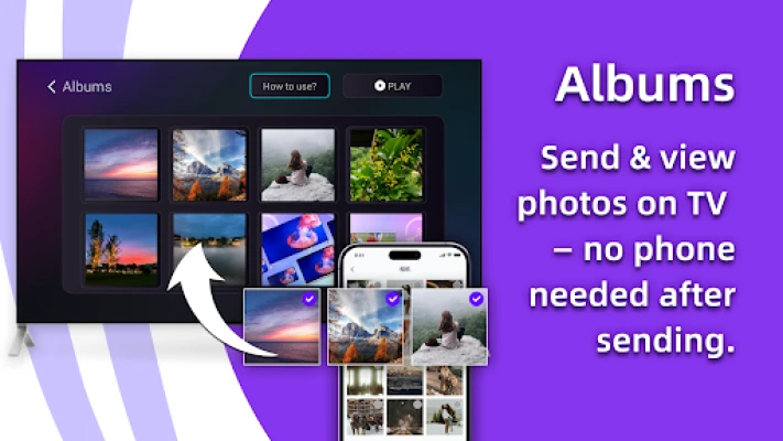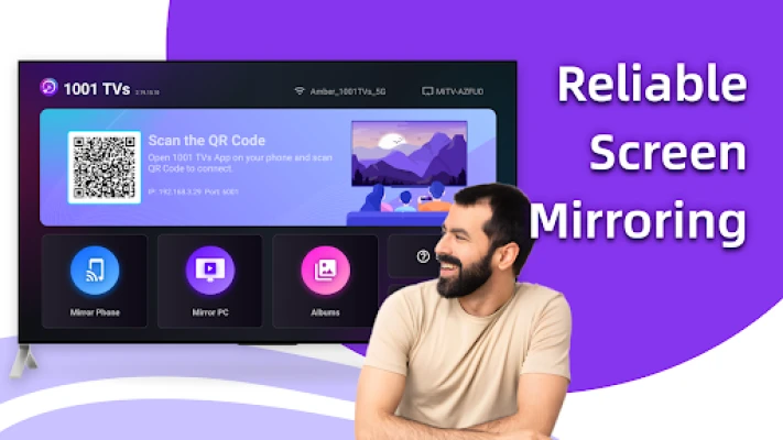 Με το 1001 TVs, μεταδώστε ασύρματα την οθόνη του Android, iPhone, Windows ή Mac σας στην Android TV σας. Απολαύστε περιεχόμενο, φωτογραφίες και βίντεο σε μεγάλη οθόνη με ευκολία και χωρίς καλώδια.