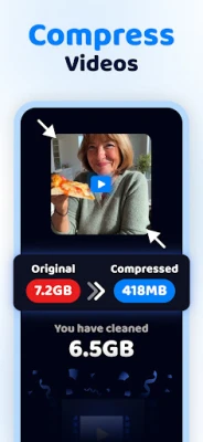 Αν τα μεγάλα αρχεία βίντεο είναι ο κύριος υπαίτιος για την έλλειψη χώρου, η λύση είναι εδώ. Ο συμπιεστής βίντεο του Cleanup μειώνει δραστικά το μέγεθος των αρχείων, χωρίς να θυσιάζει την ποιότητα της εικόνας και του ήχου. Απολαύστε τη δυνατότητα να διατηρείτε όλες τις αγαπημένες σας στιγμές, εξοικονομώντας ταυτόχρονα gigabytes πολύτιμου χώρου. Η διαχείριση των αρχείων σας γίνεται παιχνίδι, με ένα απλό σύρσιμο (swipe) για να επιλέξετε τι θα διατηρήσετε και τι θα διαγράψετε. Το Cleanup έχει σχεδιαστεί για να είναι ασφαλές, διαισθητικό και πανεύκολο στη χρήση για τον καθένα, προσφέροντας ένα καθαρό, οργανωμένο τηλέφωνο και βελτιστοποιημένο χώρο αποθήκευσης χωρίς ανησυχίες. Ανακαλύψτε τον πιο απλό τρόπο να κρατήσετε τη συσκευή σας σε άριστη κατάσταση.