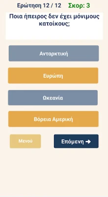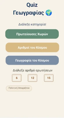 Είστε έτοιμοι να εξερευνήσετε τον κόσμο και να δοκιμάσετε τις γνώσεις σας με έναν διασκεδαστικό και συναρπαστικό τρόπο; Αυτή η εφαρμογή σας προσκαλεί σε ένα ταξίδι πνευματικής ανακάλυψης, προσφέροντας μια πλούσια συλλογή ερωτήσεων που καλύπτουν ένα ευρύ φάσμα παγκόσμιων θεμάτων. Από τις πολυσύχναστες πρωτεύουσες κάθε χώρας μέχρι τα εντυπωσιακά γεωγραφικά τοπία, από συναρπαστικά αριθμητικά δεδομένα που διαμορφώνουν την ιστορία μέχρι ουσιώδεις πληροφορίες που σκιαγραφούν την παγκόσμια σκηνή, κάθε ερώτηση είναι μια ευκαιρία να μάθετε κάτι καινούργιο. Ανακαλύψτε πόσα γνωρίζετε πραγματικά για τον πλανήτη μας και διευρύνετε τους ορίζοντές σας με έναν παιγνιώδη τρόπο.