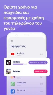 Με το Kids360: γονικος ελεγχος για παιδια, αποκτάτε τα εργαλεία για να διαμορφώσετε υγιείς ψηφιακές συνήθειες. Θέτετε εύκολα όρια στον χρόνο οθόνης για συγκεκριμένες εφαρμογές και παιχνίδια, εξασφαλίζοντας ότι τα παιδιά σας απολαμβάνουν μια ισορροπημένη καθημερινότητα. Δημιουργήστε προγράμματα που διασφαλίζουν την απόλυτη συγκέντρωση κατά τη διάρκεια των σχολικών ωρών και την ξεκούραση το βράδυ, απενεργοποιώντας ψυχαγωγικές εφαρμογές. Παράλληλα, έχετε τη δυνατότητα να παρακολουθείτε τη δραστηριότητα του τηλεφώνου τους, αποκτώντας πολύτιμες γνώσεις για το πώς χρησιμοποιούν τις συσκευές τους, ενώ η λειτουργία "Πάντα σε επαφή" εγγυάται ότι εφαρμογές επικοινωνίας και έκτακτης ανάγκης παραμένουν πάντοτε προσβάσιμες.
