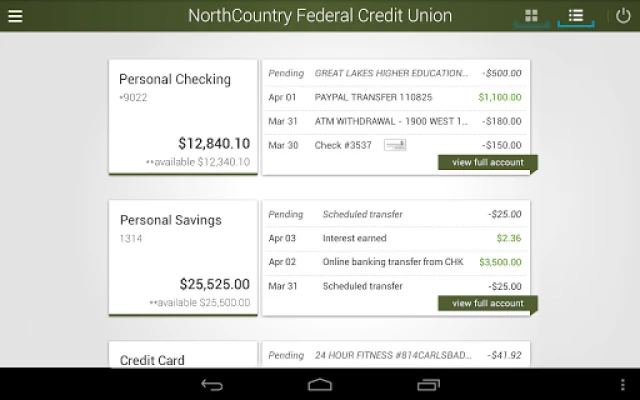 Εξερευνήστε την απόλυτη ευκολία στην τραπεζική σας εμπειρία με το NorthCountry's Mobile App. Σχεδιασμένο για να σας προσφέρει πλήρη έλεγχο των οικονομικών σας, οποτεδήποτε και οπουδήποτε, αυτή η εφαρμογή μεταμορφώνει το Android σας σε ένα προσωπικό χρηματοπιστωτικό κέντρο. Απολαύστε την ελευθερία να διαχειρίζεστε τους λογαριασμούς σας με ασφάλεια και ταχύτητα, φέρνοντας τις καθημερινές σας τραπεζικές συναλλαγές στην παλάμη του χεριού σας, 24 ώρες το 24ωρο, 7 ημέρες την εβδομάδα.