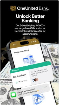 Απολαύστε την άνεση μιας σύγχρονης τραπεζικής εμπειρίας που είναι πάντα στη διάθεσή σας, δίνοντάς σας τον πλήρη έλεγχο των οικονομικών σας υποθέσεων με απαράμιλλη ευκολία. Το OneUnited Bank Mobile Banking είναι ο προσωπικός σας οικονομικός σύμβουλος, πάντα πρόθυμος να σας εξυπηρετήσει.
