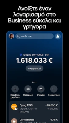Το Revolut Business αναδιαμορφώνει την επιχειρηματική τραπεζική, προσφέροντας μια ολοκληρωμένη λύση που απλοποιεί τη διαχείριση των οικονομικών σας. Αποκτήστε ασύγκριτο έλεγχο στις δαπάνες, μειώστε τις διαχειριστικές επιβαρύνσεις και μεγιστοποιήστε την αποδοτικότητα. Είτε πρόκειται για την παρακολούθηση κάθε συναλλαγής, την έκδοση εταιρικών καρτών, την απρόσκοπτη αποδοχή πληρωμών ή την έξυπνη αξιοποίηση των κεφαλαίων σας, το Revolut Business είναι ο συνεργάτης που χρειάζεστε για να αναπτύξετε την επιχείρησή σας με αυτοπεποίθηση. Η έναρξη είναι απλή και γρήγορη, ολοκληρώνοντας την αίτησή σας σε ελάχιστα λεπτά μέσω της εφαρμογής.