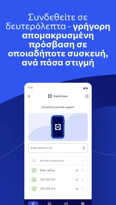 Με το TeamViewer, η απόσταση εξαφανίζεται. Αποκτήστε πλήρη, ασφαλή πρόσβαση σε οποιονδήποτε υπολογιστή Windows, macOS ή Linux, σαν να κάθεστε ακριβώς μπροστά του. Είτε χρειάζεστε να παρέχετε άμεση υποστήριξη, είτε να διαχειριστείτε συστήματα χωρίς επίβλεψη όπως διακομιστές και εικονικές μηχανές, η εφαρμογή TeamViewer σας προσφέρει την ευελιξία που απαιτείται για την απρόσκοπτη λειτουργία σας. Ελέγξτε απομακρυσμένα και κινητές συσκευές Android, ακόμα και ειδικές συσκευές όπως ανθεκτικά τηλέφωνα, περίπτερα αυτοεξυπηρέτησης και έξυπνα γυαλιά, επεκτείνοντας τις δυνατότητές σας πέρα από τα συνηθισμένα όρια.