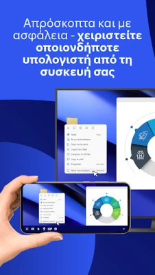 Για ζωντανή, καθηλωτική υποστήριξη, αξιοποιήστε την πρωτοποριακή λειτουργία Assist AR. Καθοδηγήστε τους χρήστες τοποθετώντας τρισδιάστατους δείκτες απευθείας στο περιβάλλον τους, προσφέροντας μια πραγματικά διαδραστική εμπειρία. Εργαστείτε στον απομακρυσμένο υπολογιστή σας από το τηλέφωνο ή το tablet σας, ακόμη και όταν βρίσκεστε εν κινήσει, διατηρώντας την παραγωγικότητά σας αμείωτη. Η μεταφορά αρχείων γίνεται παιχνιδάκι, επιτρέποντας την αμφίδρομη κοινή χρήση μεταξύ των συσκευών σας με απόλυτη ευκολία. Επιπλέον, επικοινωνήστε άμεσα μέσω συνομιλίας σε πραγματικό χρόνο για ερωτήσεις, ενημερώσεις ή καθοδήγηση καθ' όλη τη διάρκεια της συνεδρίας, διασφαλίζοντας πάντα την αποτελεσματική συνεργασία.